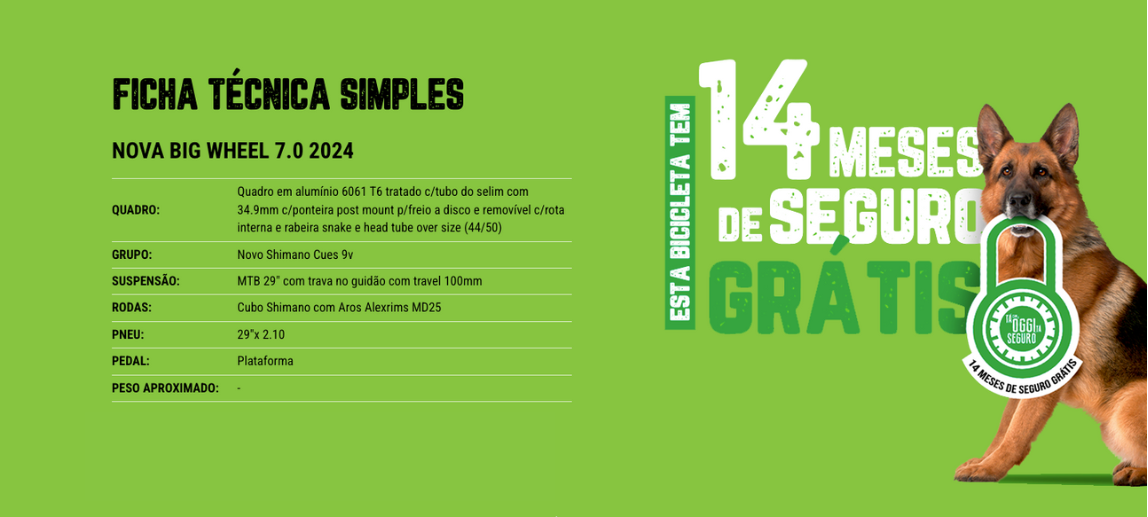 A Big Wheel 7.0 é a bicicleta que oferece o melhor dos dois mundos. Com seu quadro de alumínio leve e resistente, suspensão dianteira robusta, e freios a disco hidráulicos, ela proporciona uma pedalada confortável e segura em qualquer ambiente. Além disso, as rodas aro 29 com pneus de uso misto garantem uma performance superior tanto no asfalto quanto na terra.